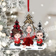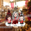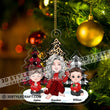 Grandma And Kids Sitting Near The Christmas Trees, Christmas Gift For Mom, Grandma, Custom Appearances And Names - Personalized Acrylic Ornament - Gift For Christmas, Family Gift