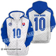 Unisex Shirt - Custom Name And Number Slovakia National Team White Blue Euro 2024 Zipper Hoodie / S